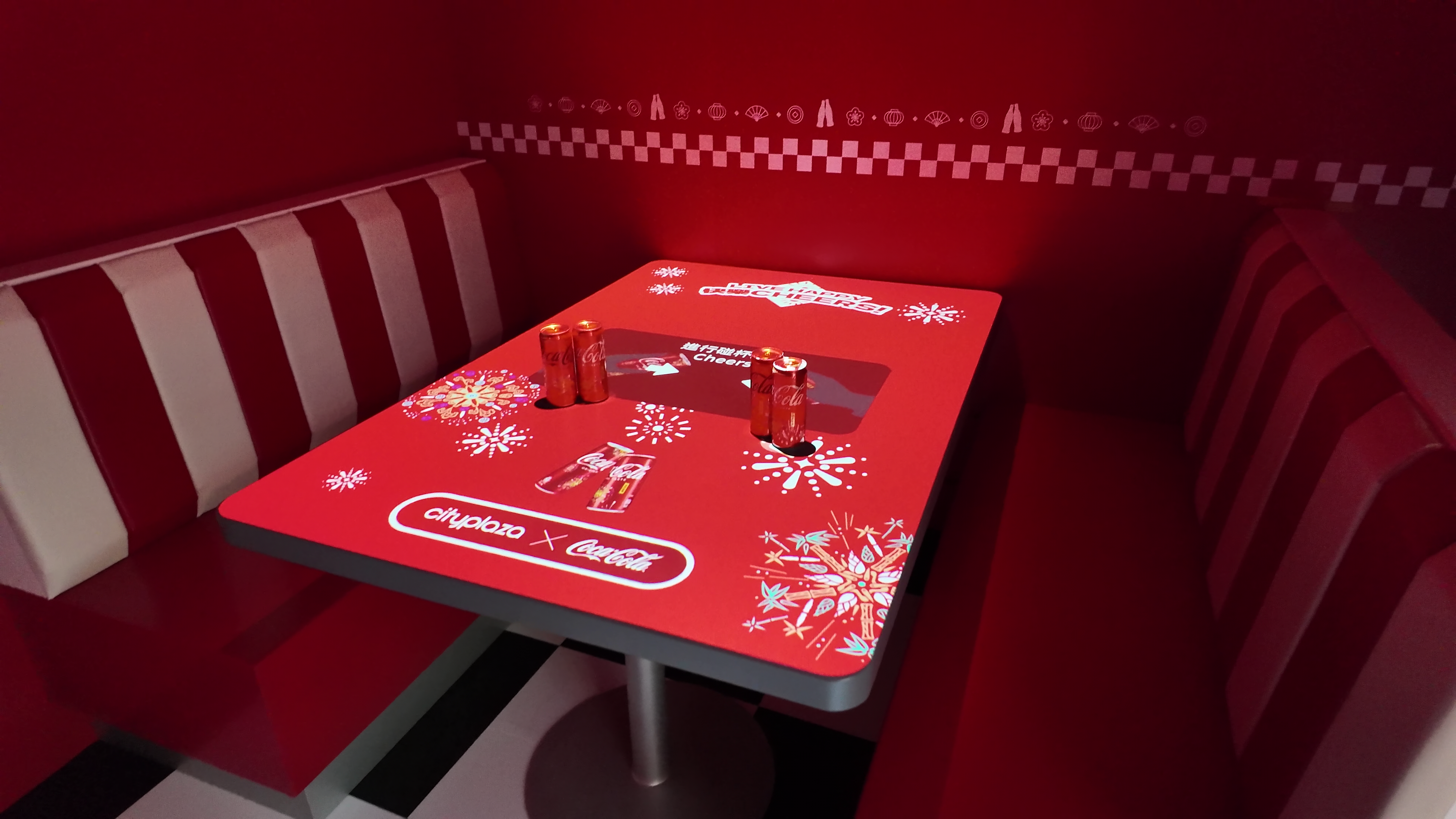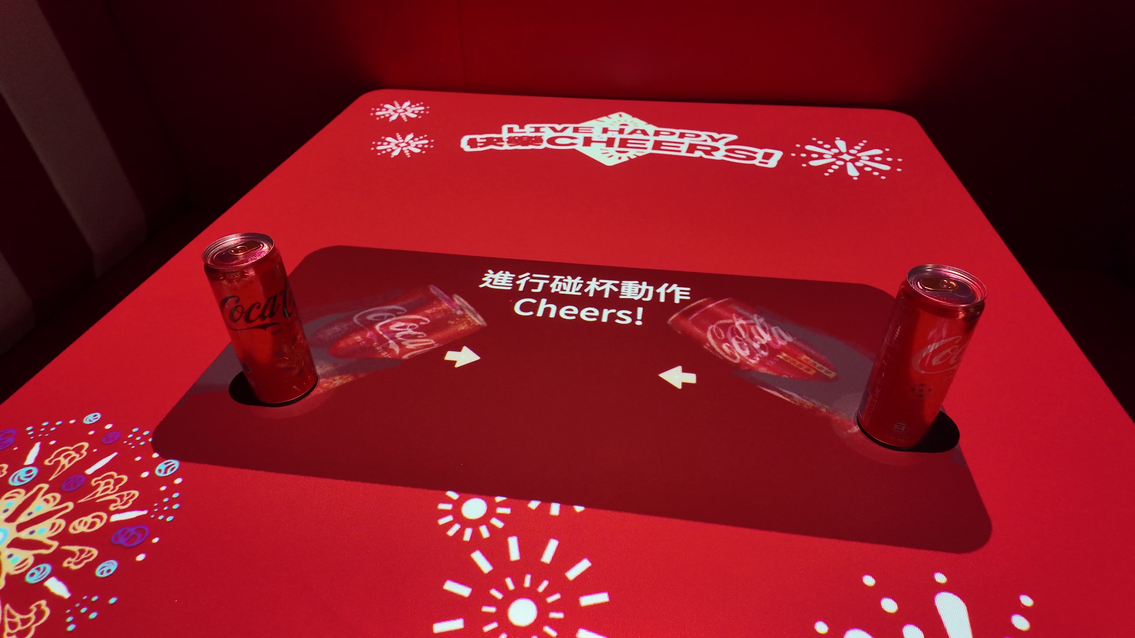 For the Cityplaza x Coca-Cola® Chinese New Year event, we developed a custom photobooth where guests can capture their joyful images to create and print a unique, personalized “Fai Chun.” Alongside this, we created an interactive table where players hold Coca-Cola bottles to cheer with one another. This physical “clinking” motion triggers vibrant projection effects on the table, simulating the excitement of a real-life celebration. Together, these elements offer guests a fun, hands-on way to participate in the New Year festivities and take home a memorable keepsake.